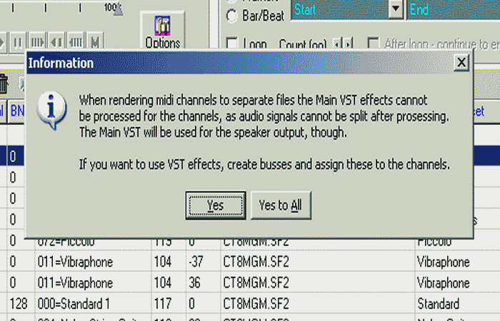 Damit gilt: Es werden aus 16 MIDI-Kanälen 16 Stereo-Wave, also