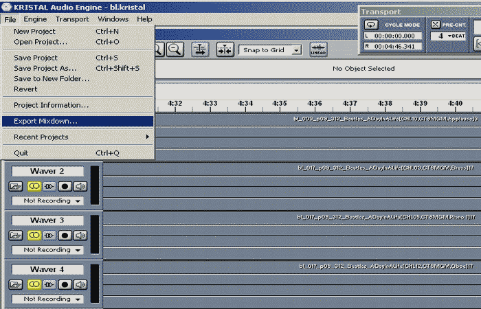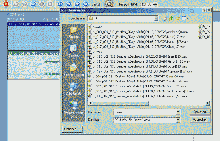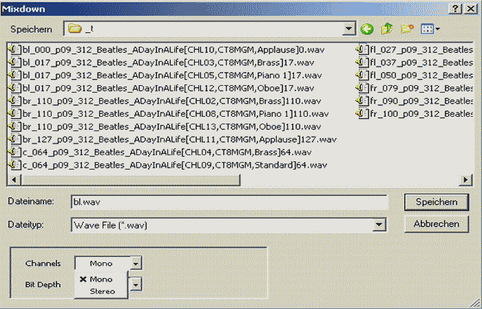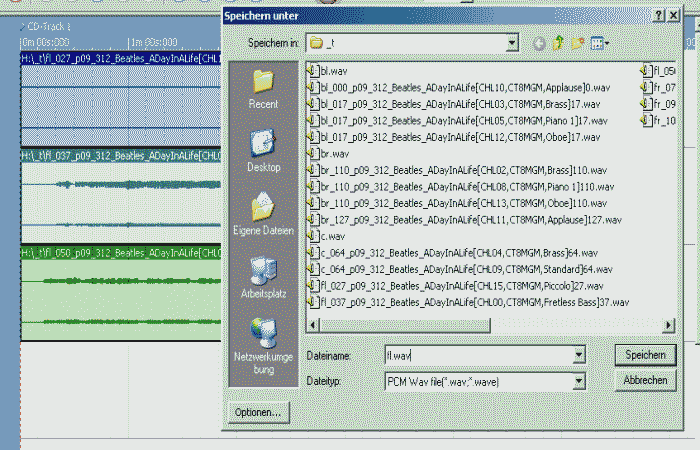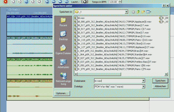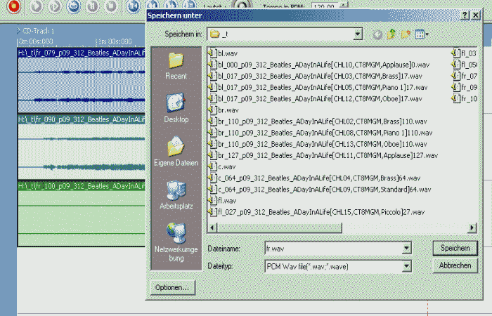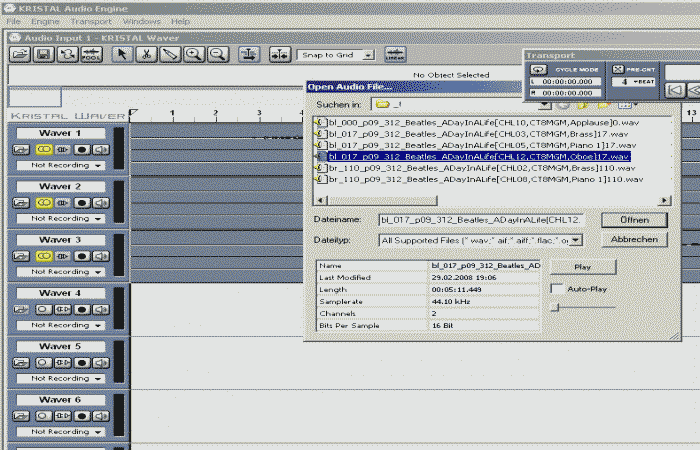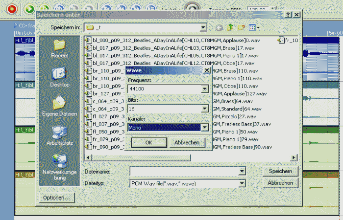 Anhand der Software Kristal (Freeware) werden die bl-Wave-Dateien zu 1 Gesamt-Datei gemixt