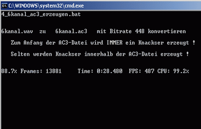 Zur AC3-Erzeugung anhand der 6-Kanal-Wave wird AC3Tool AC3Enc (Freeware) verwendet.