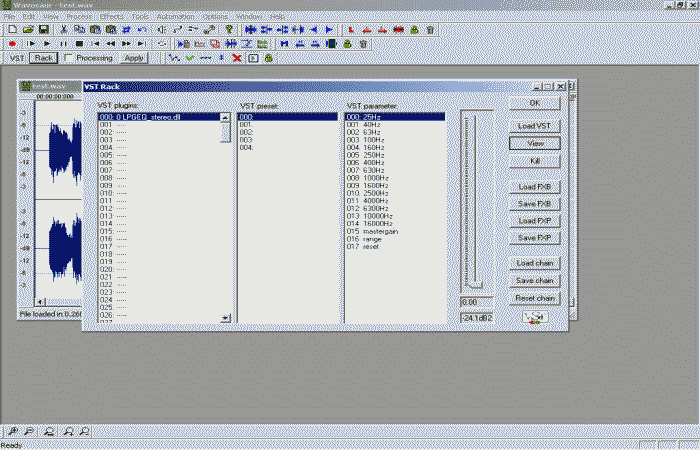 VST-Plugin ist ein 2 x 24-Kanal Equalizer für Stereo-Wave (Plugin als DLL).